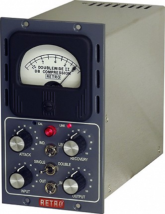 The DOUBLEWIDE II is a single-channel compressor that installs into two slots of a standard 500 series rack yet it requires only 130-milliamps of current—just like the original Retro DOUBLEWIDE compressor. Also retained from the original are the gray painted front panel, high-quality US-made Simpson gain- reduction meter, and hand wiring throughout (no troublesome ribbon cables). DOUBLEWIDE II’s excellent build-quality is apparent starting with the American-made PC board and extends to the durable and attractive stainless steel case and, don’t forget, we only use Cinemag’s highest-quality input and output transformers for authentic tone and weight plus the complete freedom from external interference and noise. During initial user testing and comparison, the DOUBLEWIDE II immediately exceeded all expectations with increased flexibility and control that many original DOUBLEWIDE users have demanded. With both faster attack and release (recovery) times now possible, the DOUBLEWIDE II excels at energizing vocal tracks as well as controlling bass, guitars and drum tracks in an elegant and transparent way or go extreme and radical—or dial in anywhere in between!
