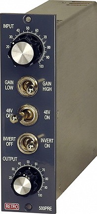 500PREWe took the circuit topology of the Sta-Level and packed it into a single width 500 module. The 500PRE three tube gain stage exhibits the same detail and depth. As with all Retro products, the feeling of the musical performance is delivered with the Retro Instruments 500PRE. - Features
